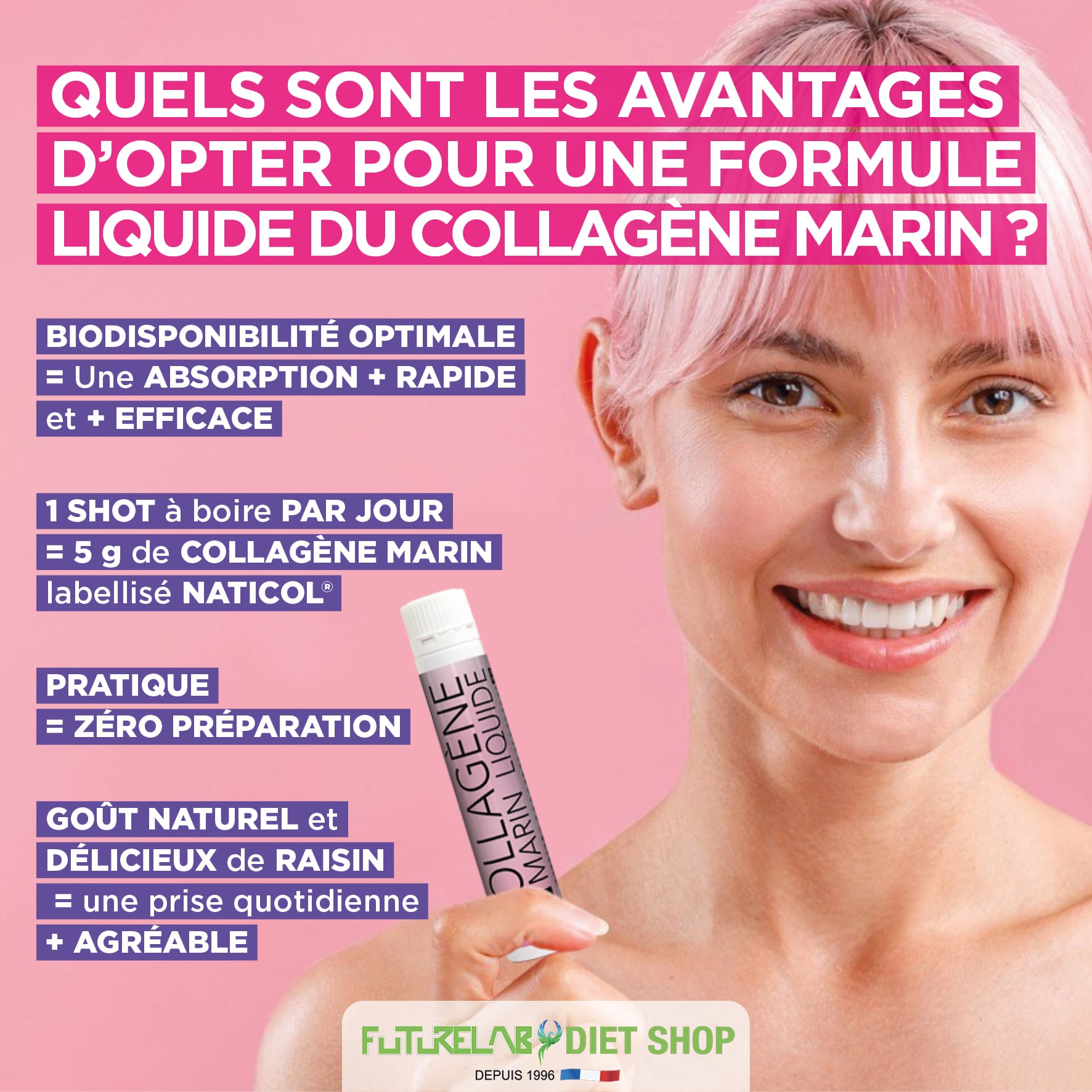 Notre collagène marin liquide se présente sous forme d'une cure de 20 jours, avec 1 dose par jour, renouvelable selon vos besoins et vos objectifs. Il peut être consommé quotidiennement sans aucun risque, pour maintenir les bienfaits sur le long terme.Pour des résultats optimaux, ingérez 1 dose par jour selon vos besoins :Le matin, afin de stimuler la production naturelle de collagène, préserver les cellules des agressions extérieures et révéler l'éclat naturel de la peau.