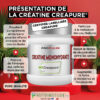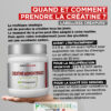 La créatine agit principalement en augmentant les réserves de phosphocréatine dans les muscles, ce qui permet de régénérer plus rapidement l’ATP (Adénosine TriPhosphate), la principale source d’énergie pour les efforts courts et intenses.Augmentation de la force et de la puissance musculaire : Elle permet d’améliorer significativement les performances lors d’exercices très intenses et de courte durée (comme les séries de musculation, les sprints, le CrossFit, ou l’haltérophilie).