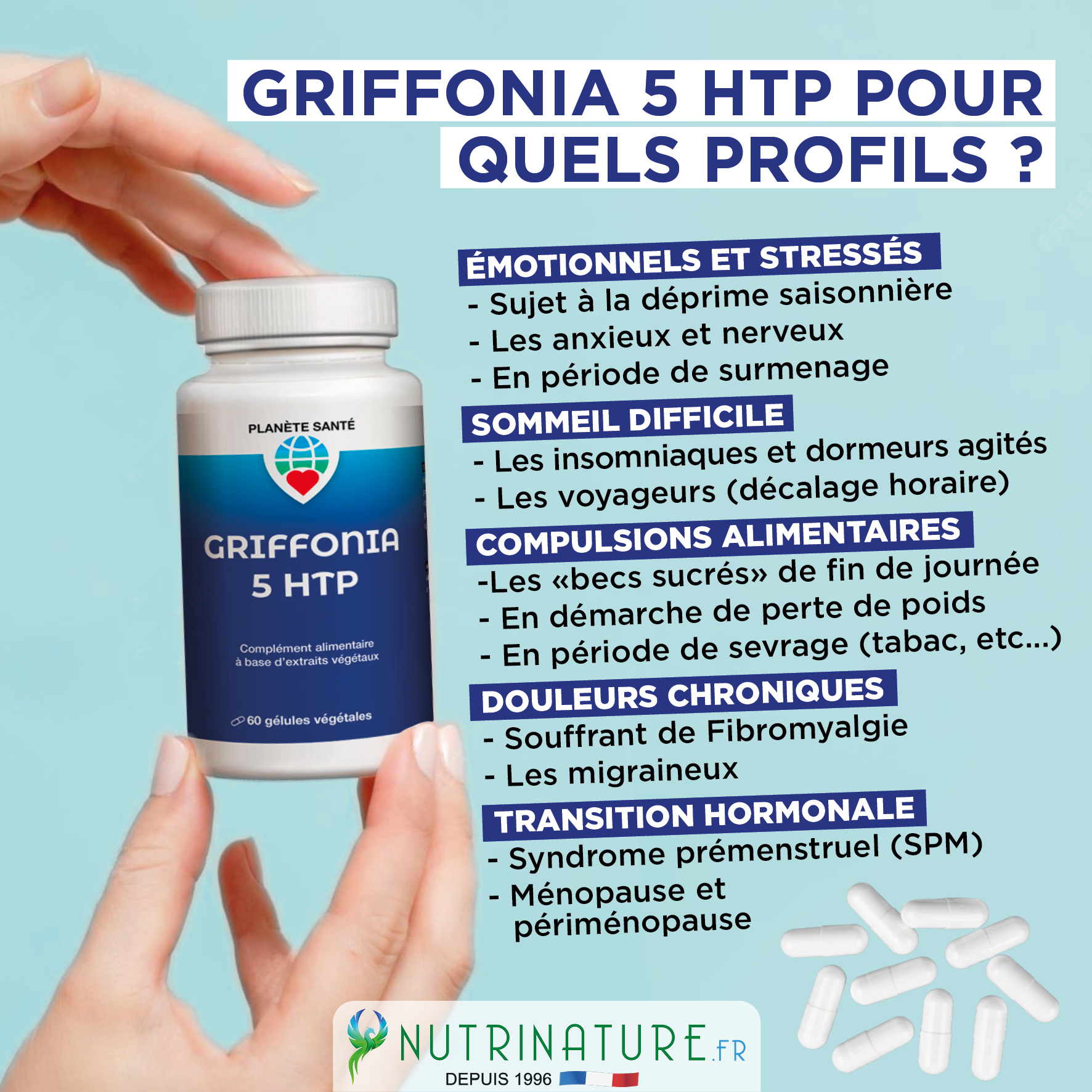 C’est l’usage le plus courant. En augmentant le taux de sérotonine, le 5-HTP aide à :