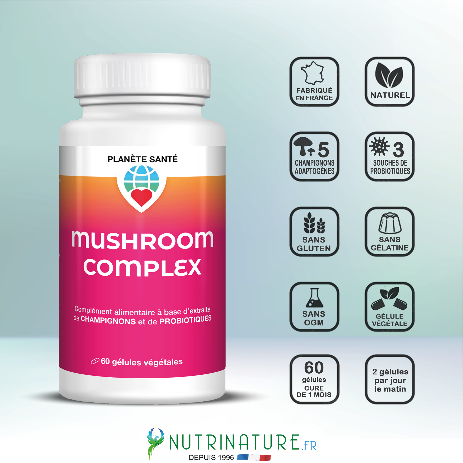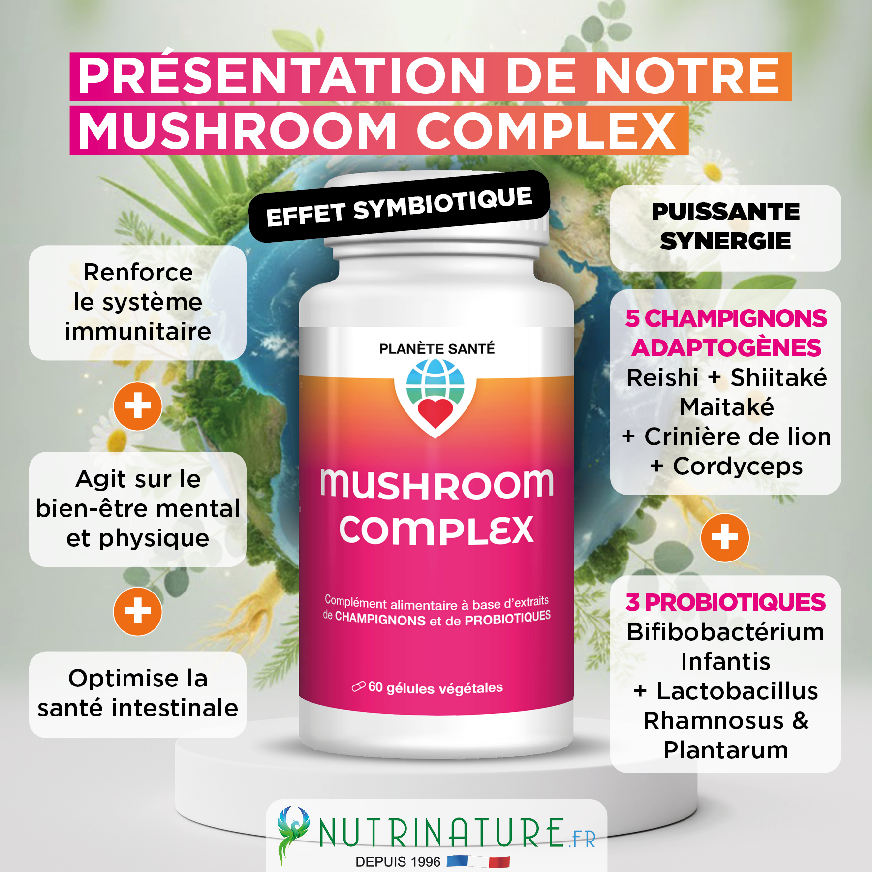 - Sélection de 5 champignons + probiotiques