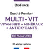 Ce complément alimentaire associe les bienfaits de vitamine et minéraux, et des antioxydants naturels. Grâce à sa formule enrichie en phytonutriments, il se distingue par l’ajout de composants végétaux puissants pour une efficacité optimale. Voici les principaux ingrédients :