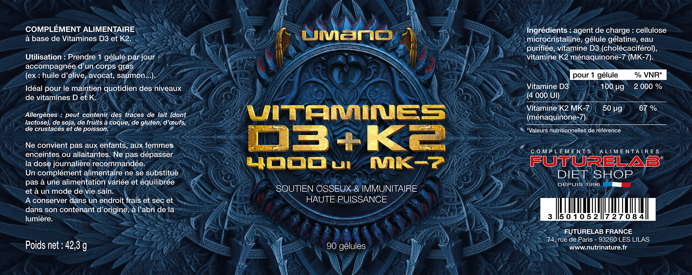 | D3 (4 000 UI) | Absorption | Augmente le taux de calcium disponible. |